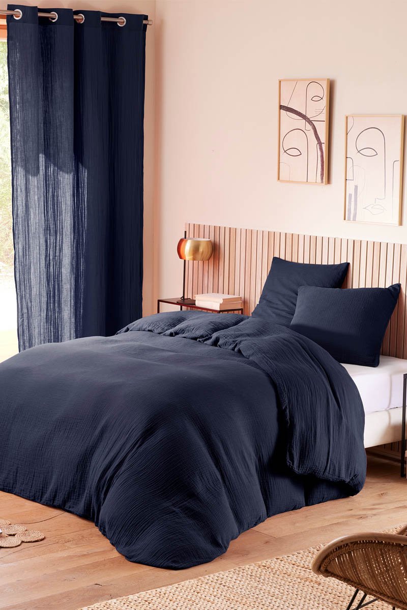 Conjunto de edredão em gaze de algodão 57 fios/cm² - Azul-escuro