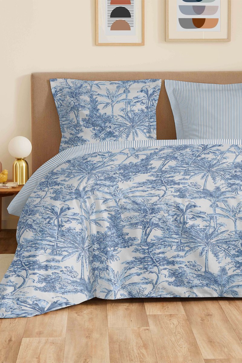 Conjunto de lençóis reversível em algodão - 57 fios/cm² - Azul