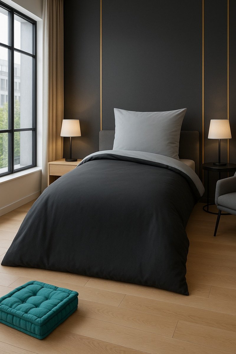 Capa de edredão reversível em algodão - 57 fios/cm² - Cinzento-claro e cinzento-escuro