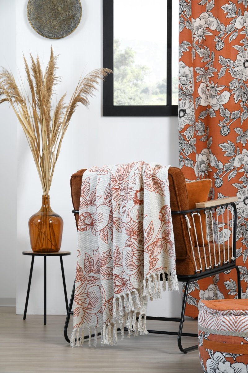 Manta Galicia - Laranja e cru - 125 x 150 cm