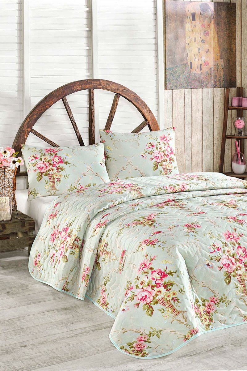 Conjunto colcha em algodão 48 fios/cm² Alanur - Menta e rosa