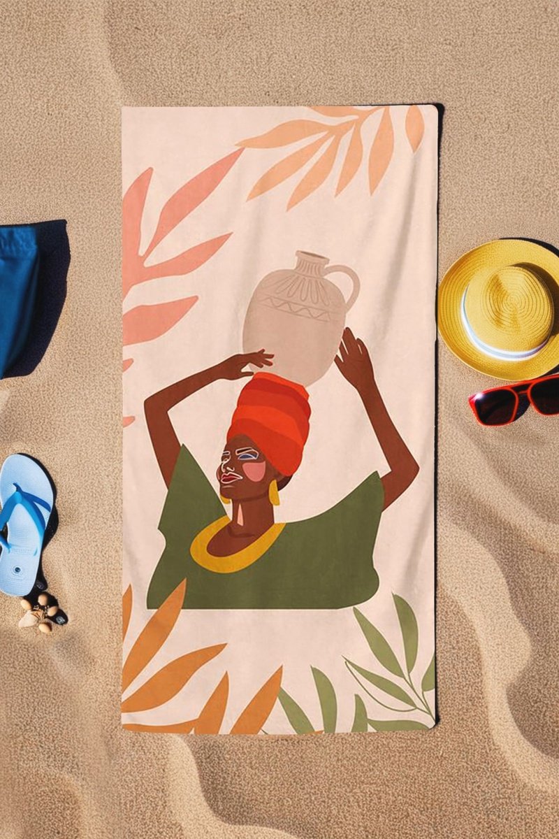 Toalha de praia grande - Bege e verde - 75 x 150 cm