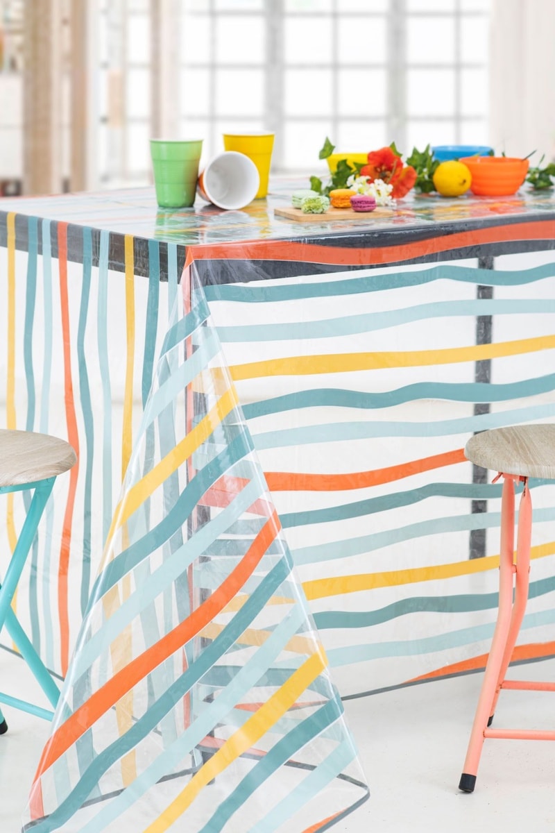 Toalha retangular em plástico - Branco e laranja - 140 x 200 cm