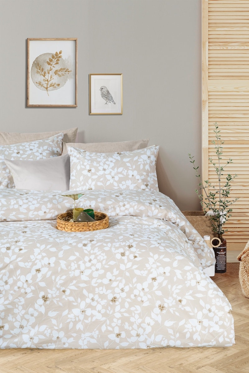Conjunto de edredão em algodão 54 fios/cm² - Bege