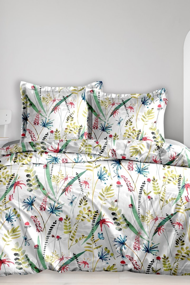 Conjunto de edredão em algodão 70 fios/cm² - Branco e verde