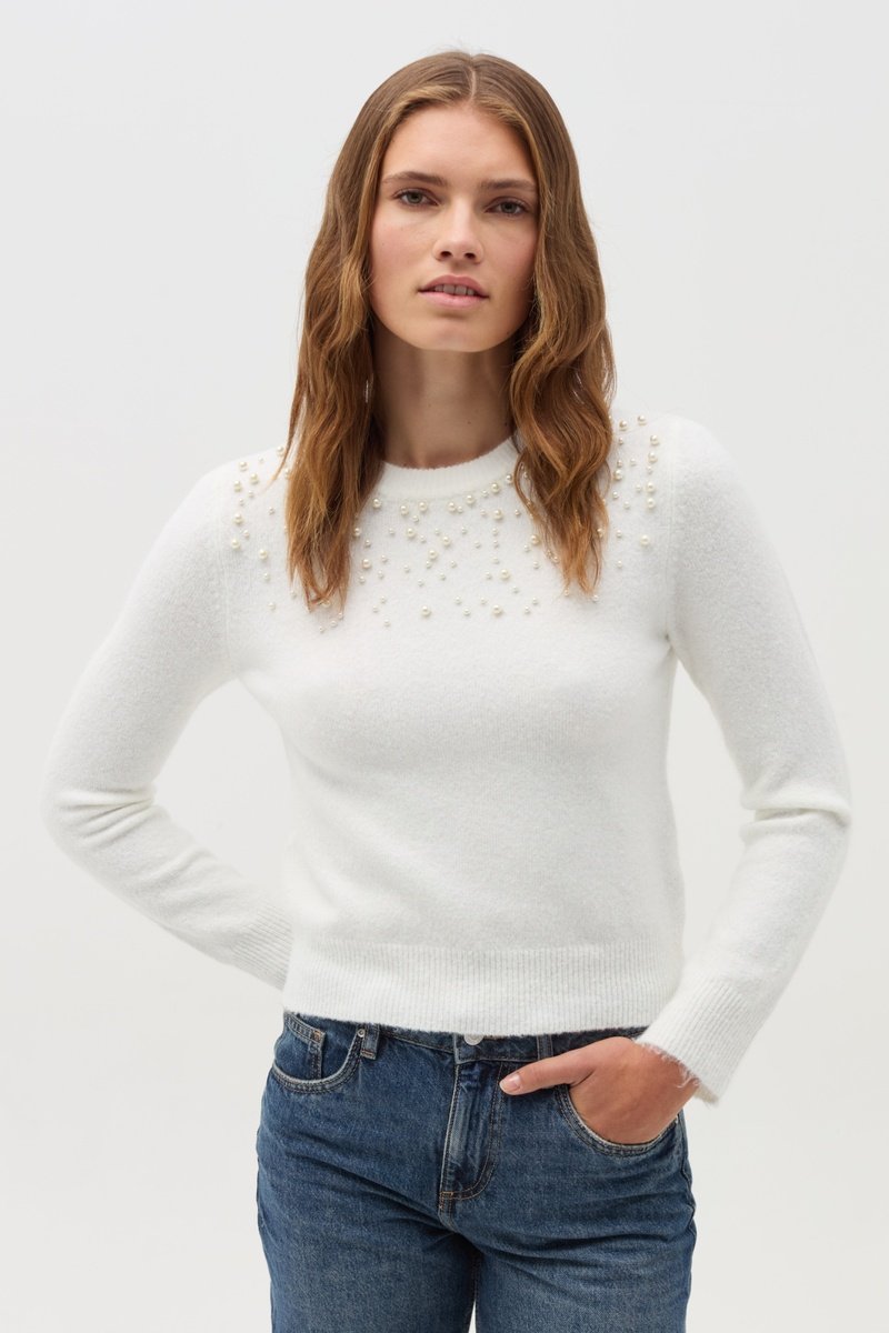 Pérolas decorativas à frente.