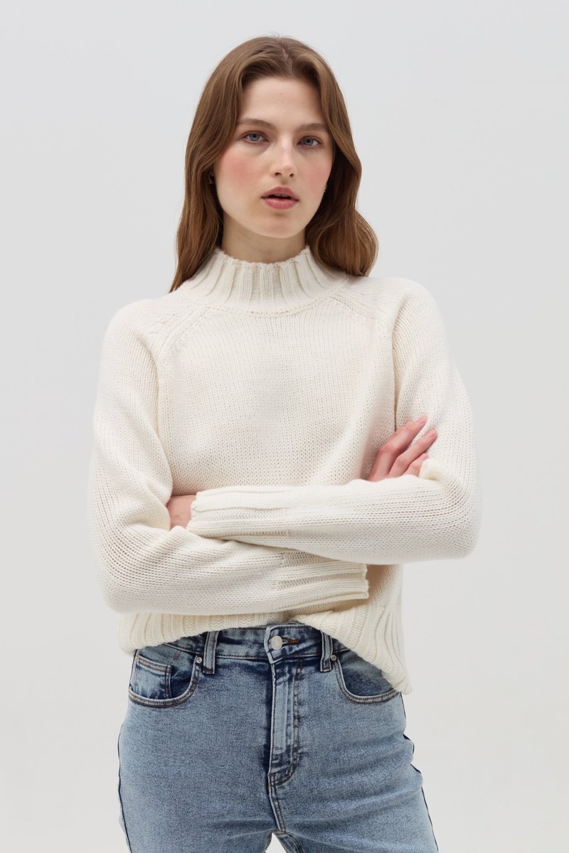 Camisola em malha canelada.