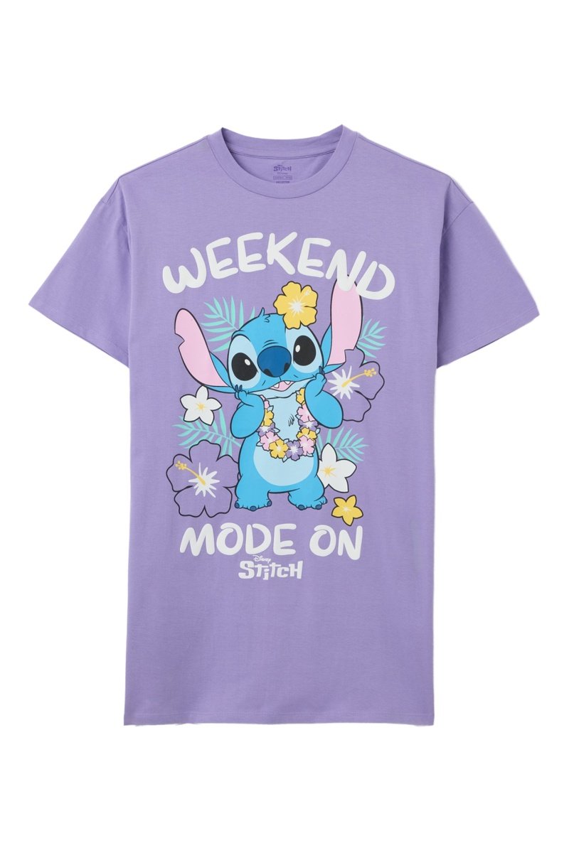 Camisa de noite em algodão biológico Stitch Lilo e Stitch Disney - Malva