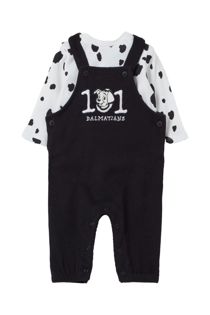 T-shirt e jardineiras em algodão biológico 101 Dálmatas Disney - Preto e branco