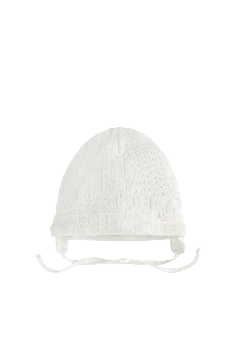 Gorro em malha canelada perfurada.