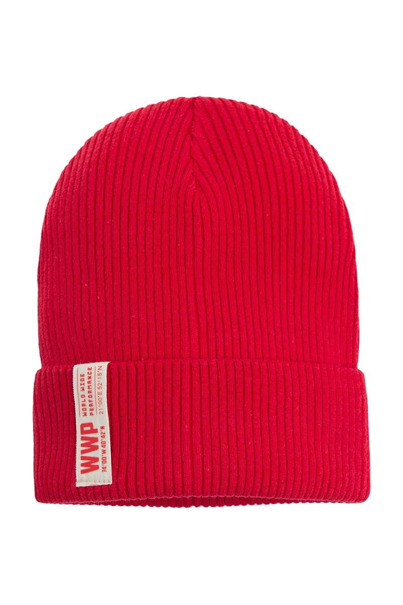 Gorro em malha canelada.