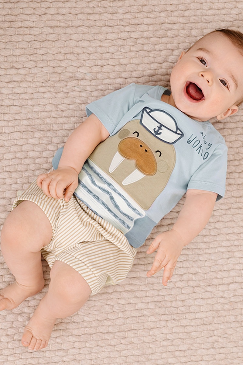 T-shirt e calções - Azul e bege