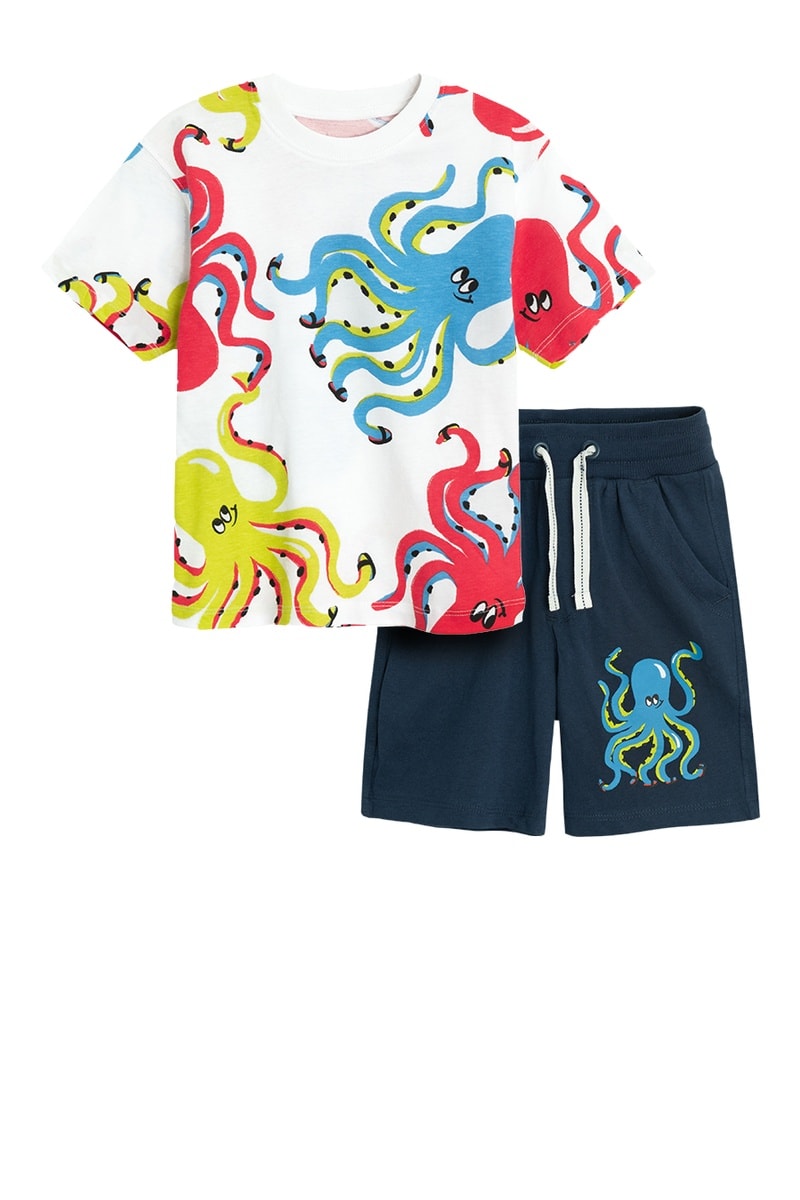 T-shirt e calções - Branco e azul-marinho