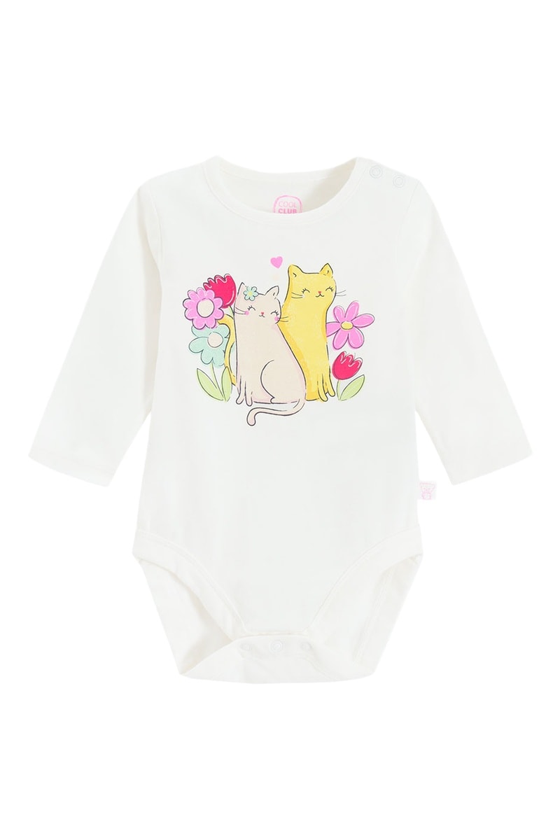 Estampado florido e gato à frente.