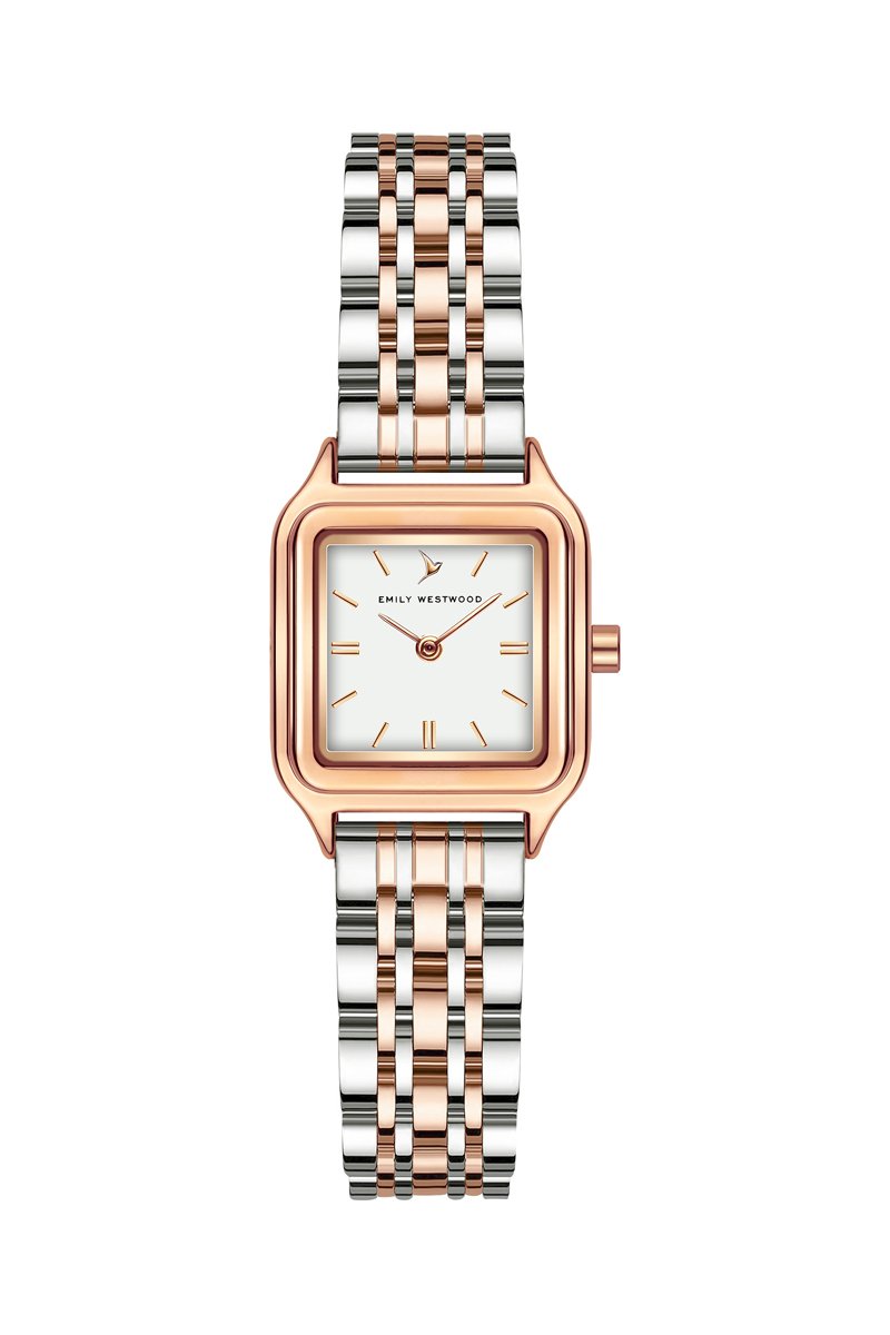 Relógio de quartzo em aço - Dourado-rosa e prateado - Emily Westwood