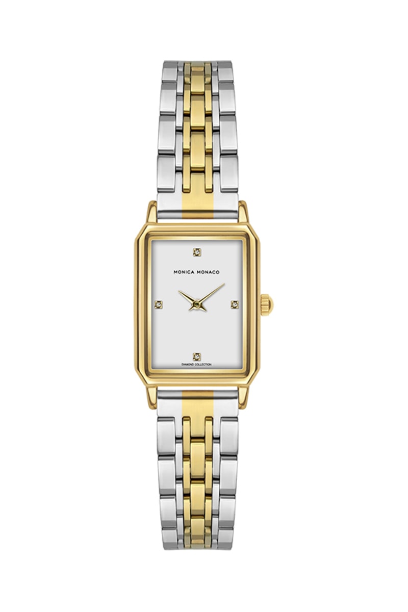Relógio de quartzo em aço e diamante - Dourado e prateado