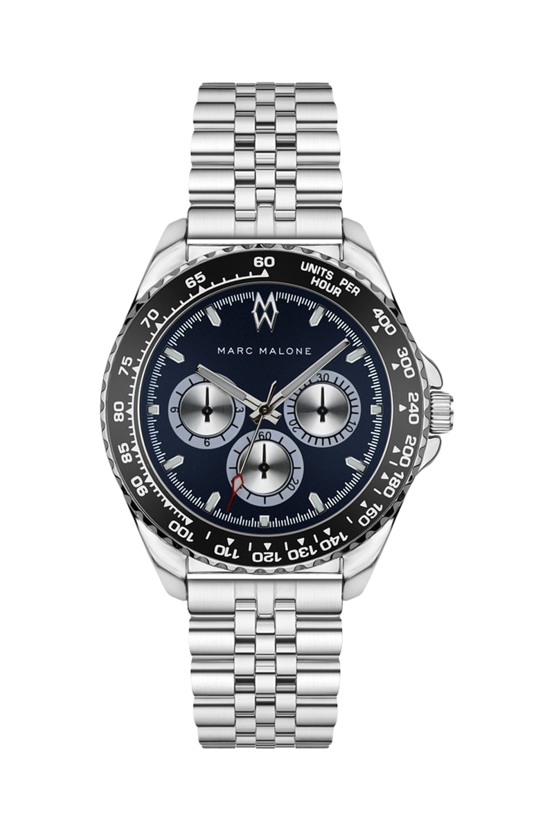 Relógio de quartzo em aço - Tacómetro Prateado e preto