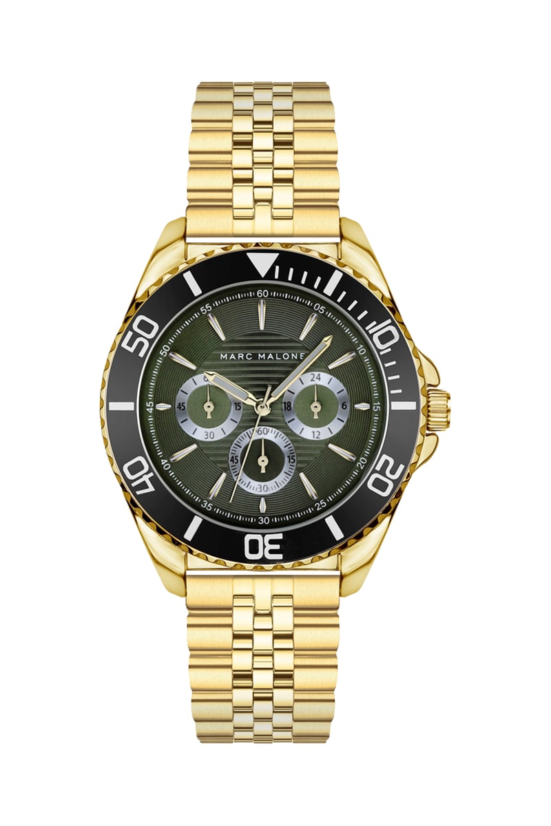 Relógio de quartzo em aço - Cronógrafo - Dourado e preto
