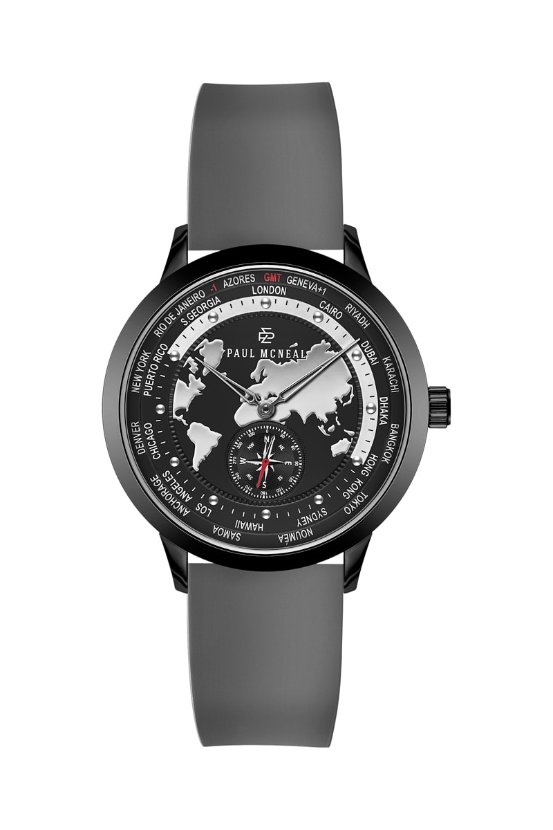 Relógio de quartzo em silicone - GMT - Bússola - Cinzento-escuro e preto