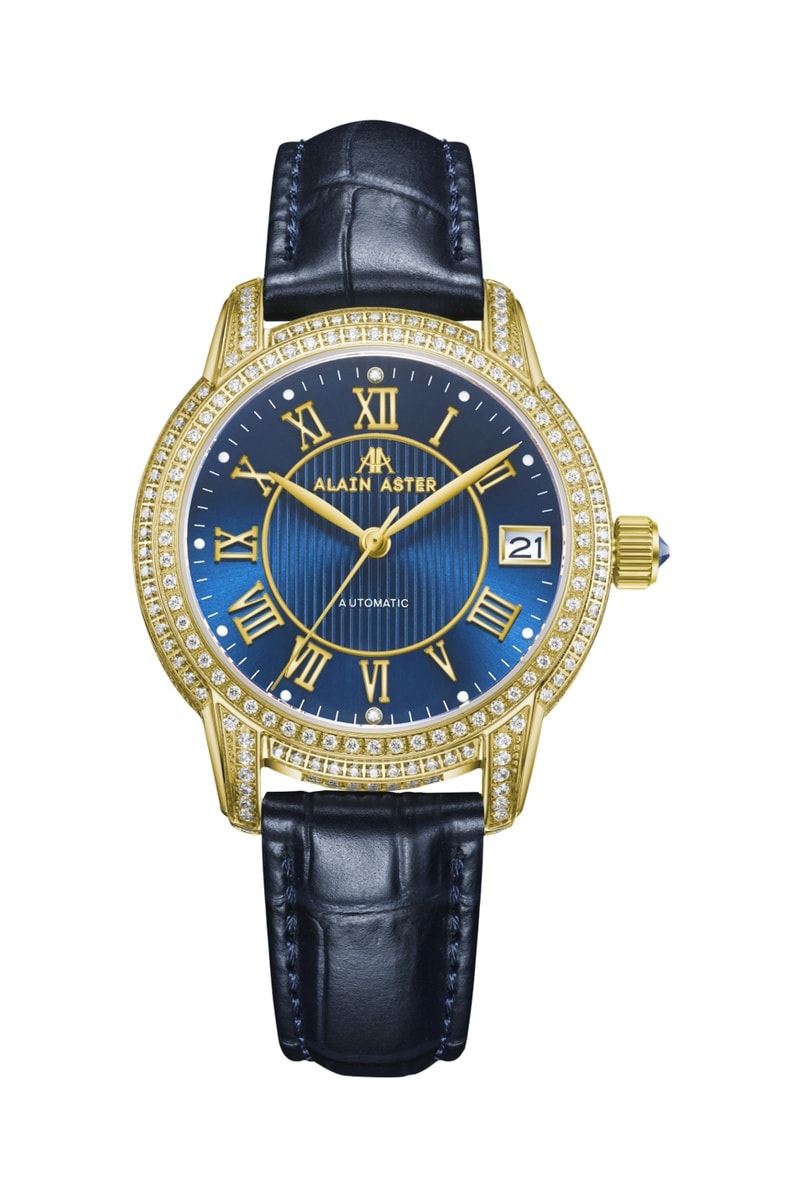 Relógio automático de couro e diamantes