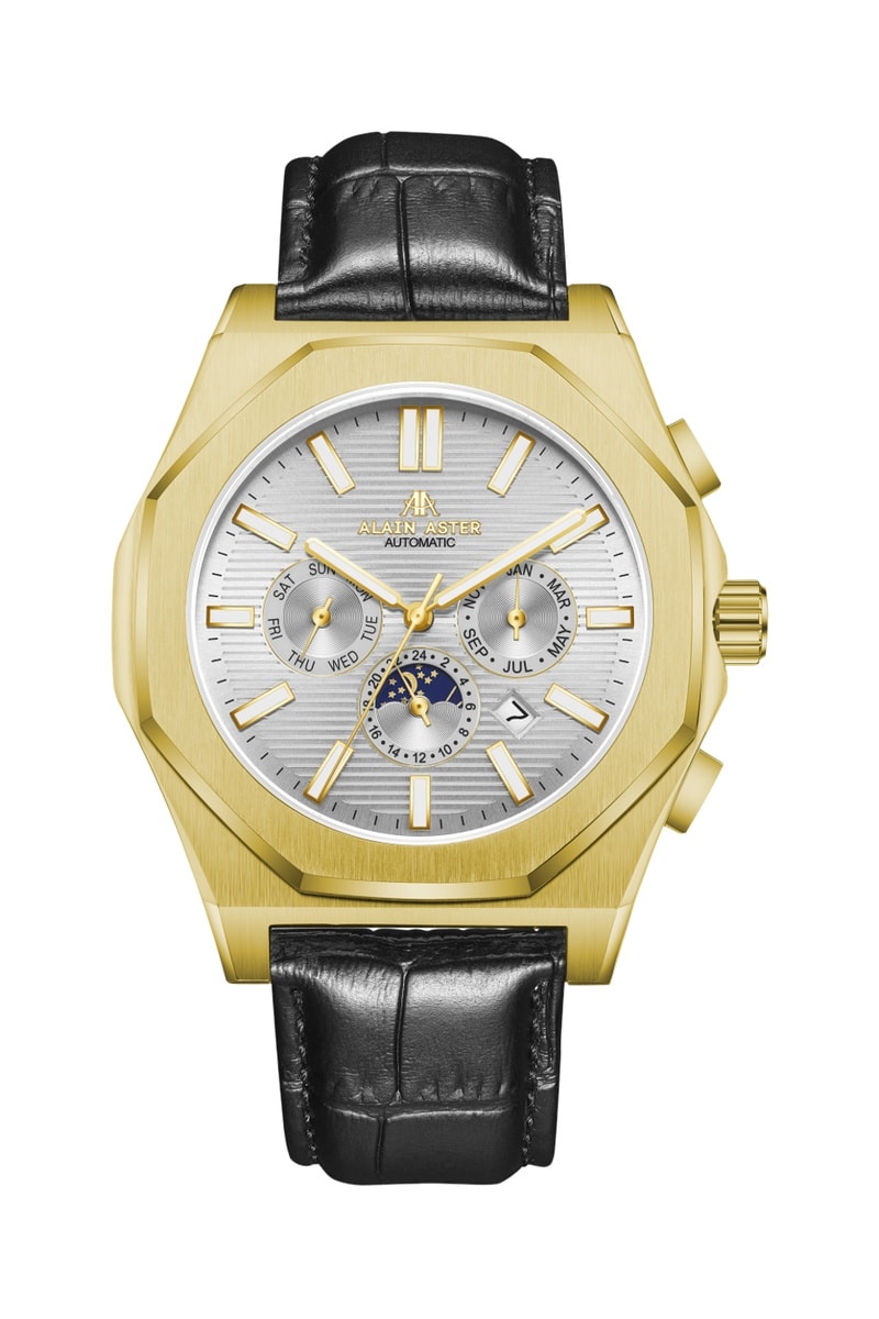Relógio automático de couro - Preto e dourado