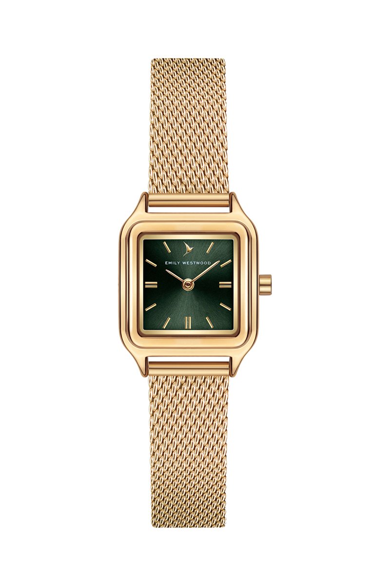 Relógio quartzo japonês de aço - Dourado e verde - Emily Westwood