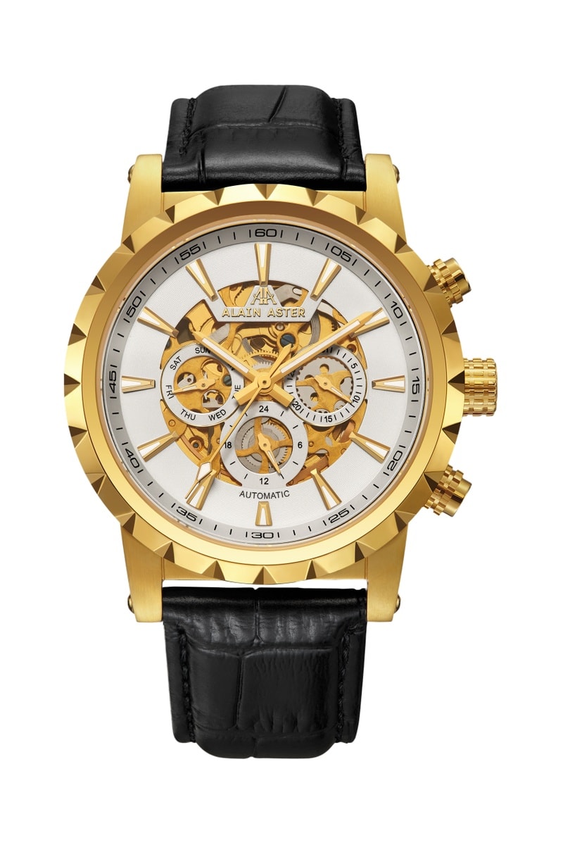Relógio automático de couro - Preto e dourado