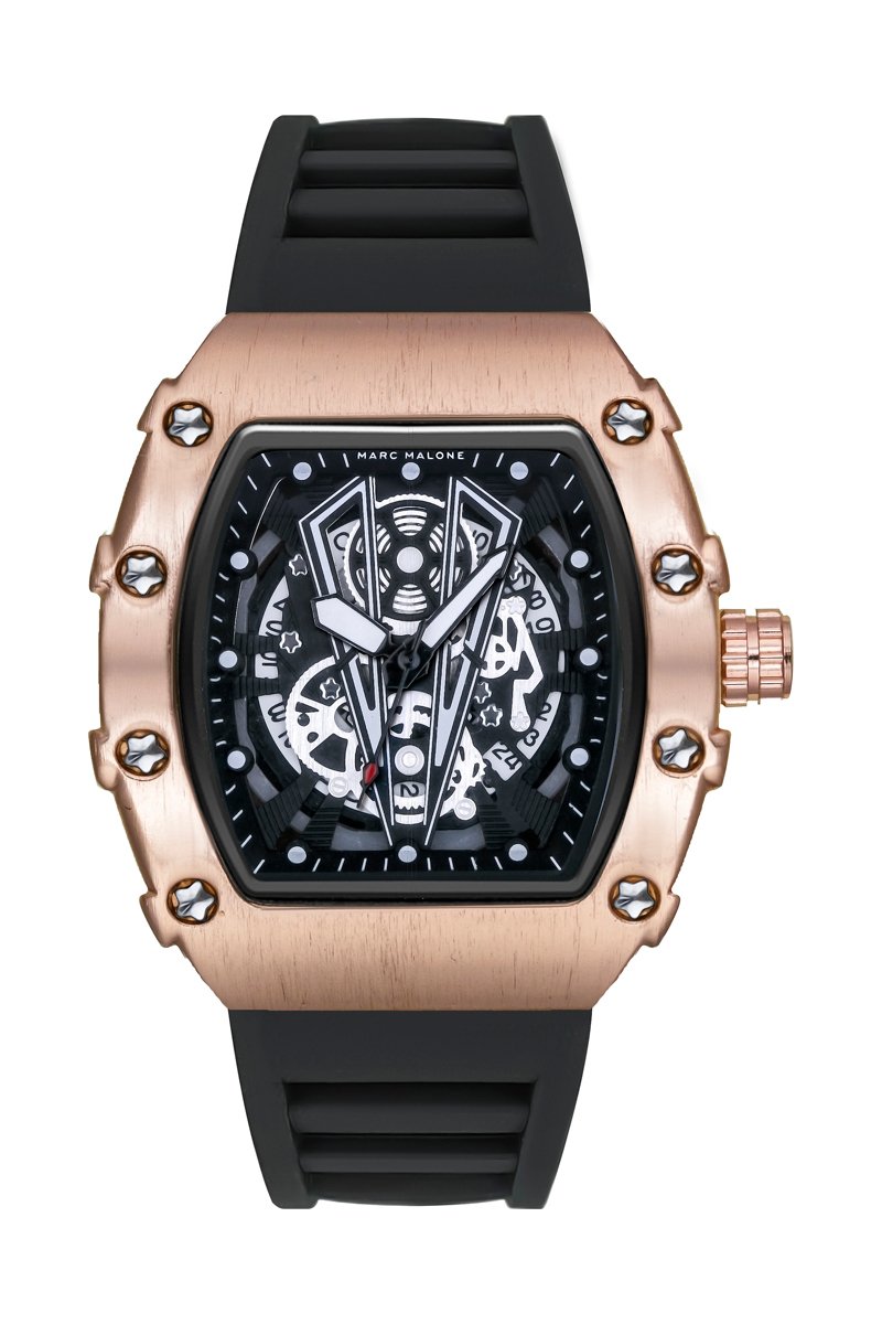Relógio de quartzo em silicone - Preto e dourado - Marc Malone