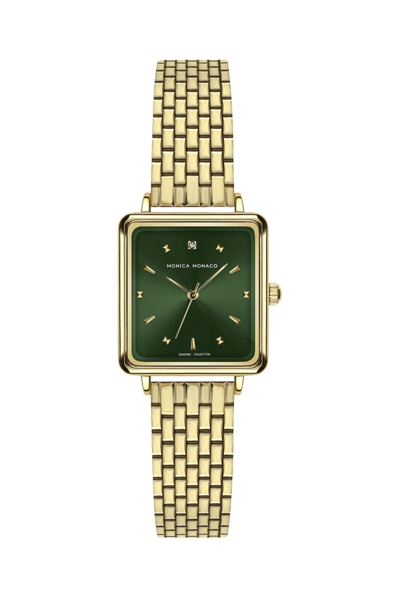 Relógio de quartzo em aço e diamantes - Dourado e verde