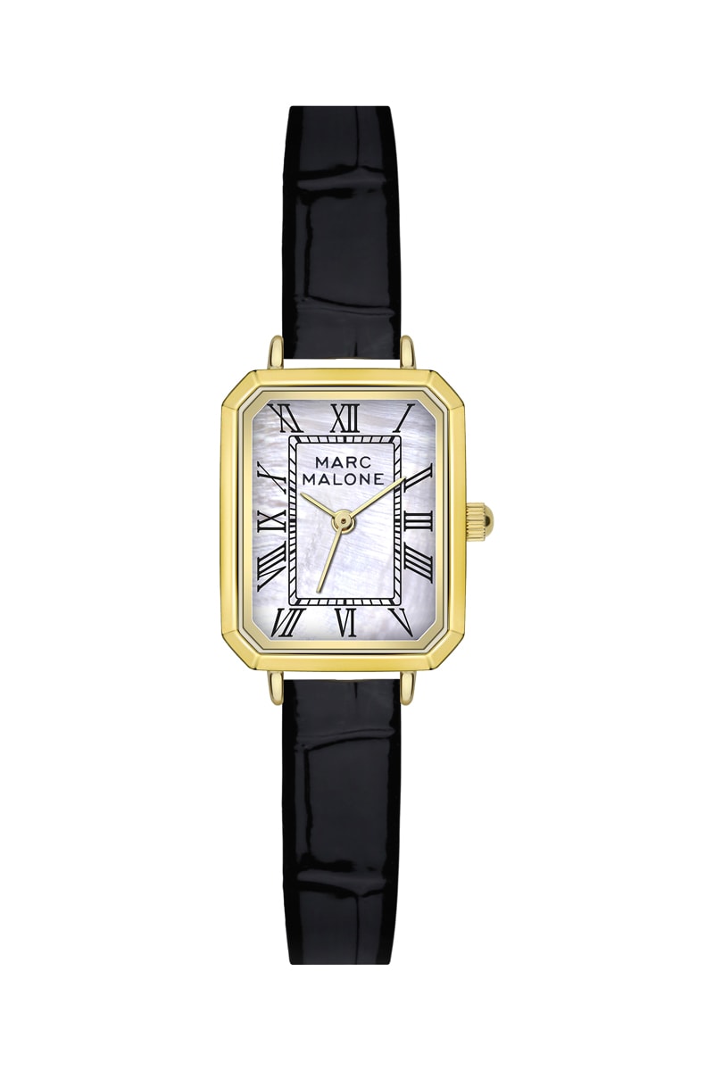 Relógio de quartzo em couro - Preto e dourado - Marc Malone