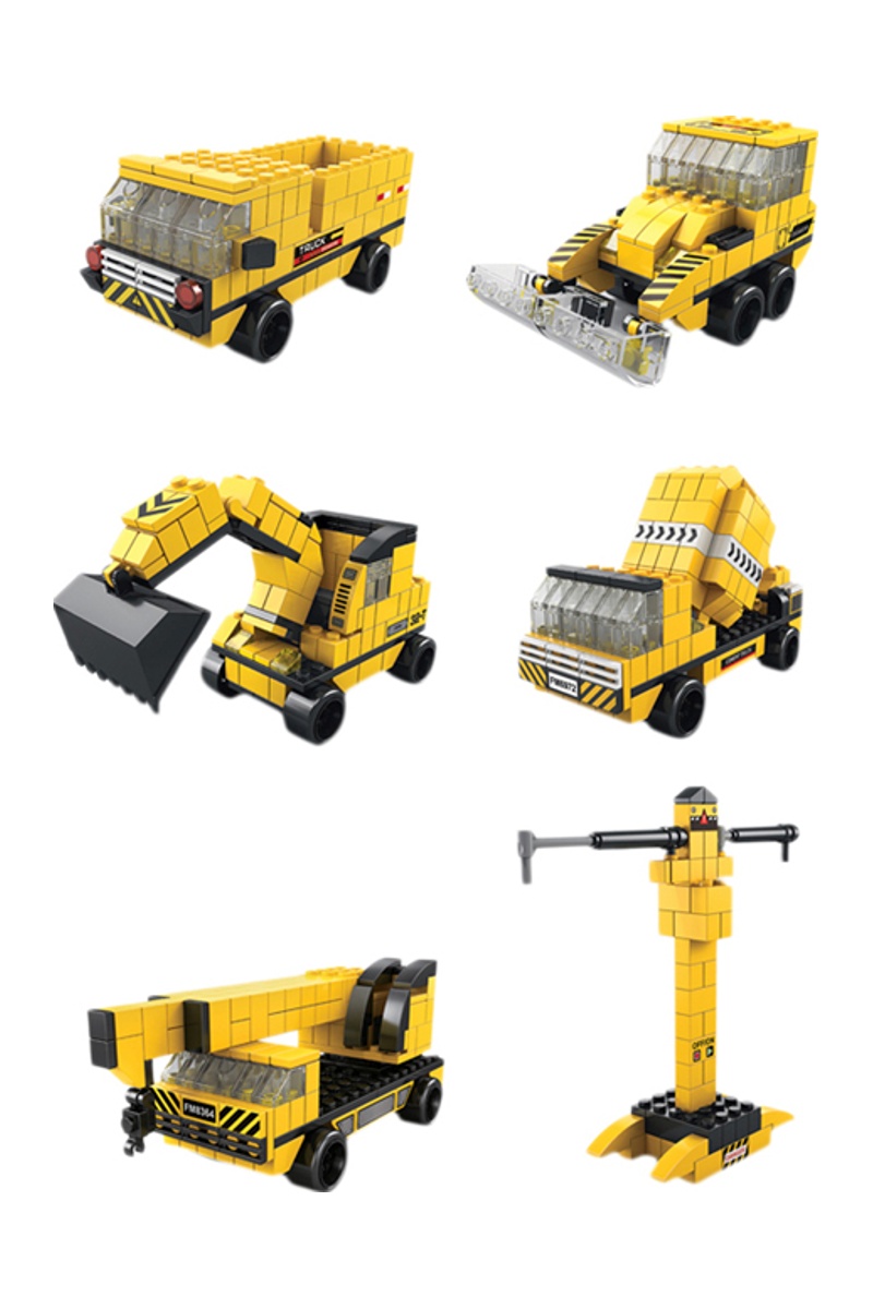 Este conjunto 6 em 1 - tema obra - é composto por 1000 peças e permite construir e montar diferentes elementos fiéis ao universo dos veículos de construção.