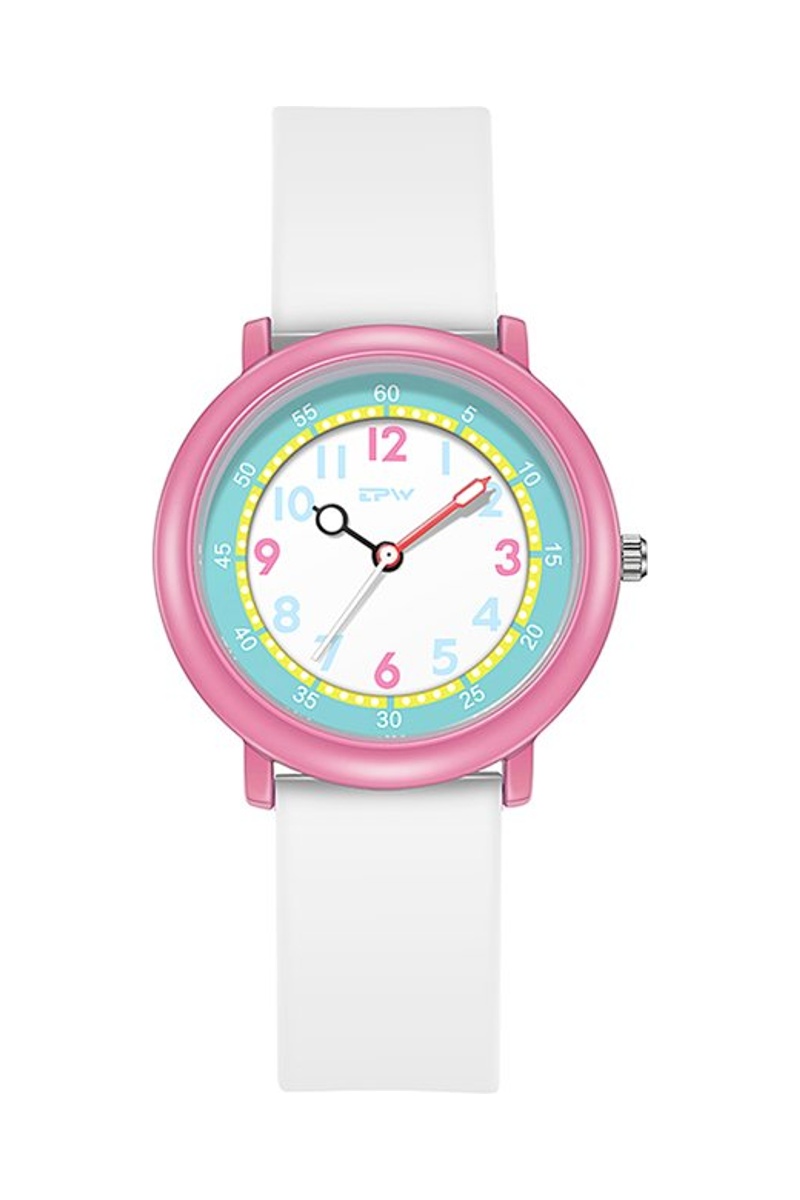 Relógio de quartzo em silicone Flex - Branco e rosa