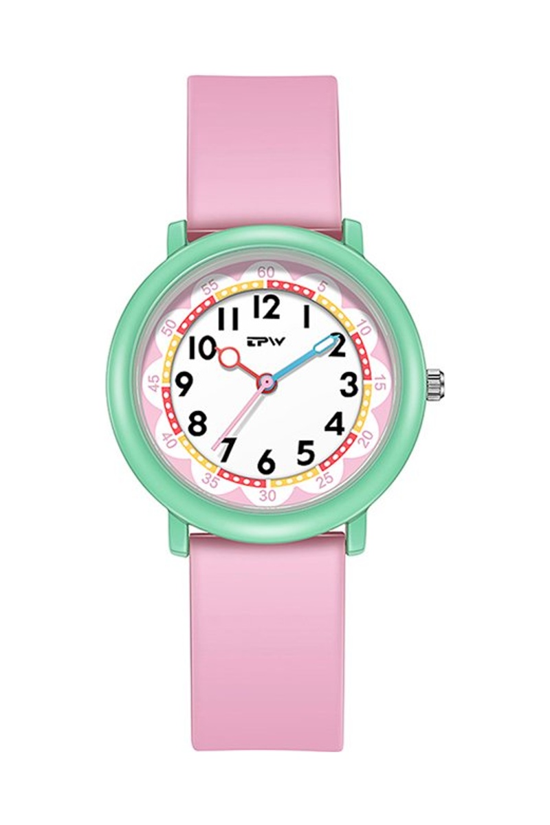 Relógio de quartzo em silicone Flex - Rosa e verde