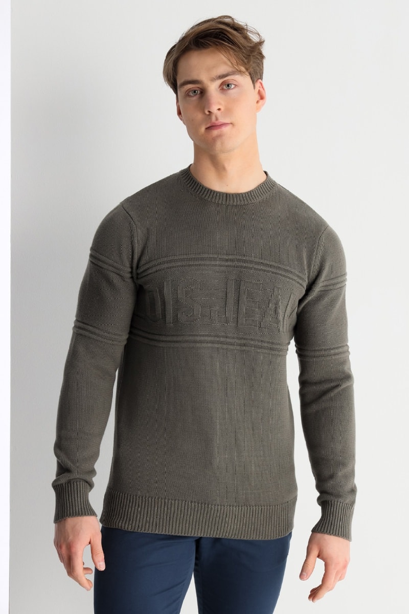 Estampado às riscas em relevo.
