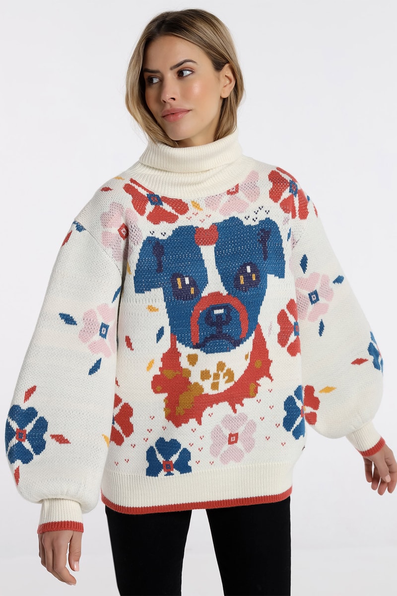 Camisola de mangas compridas volumosas com estampado de flores.