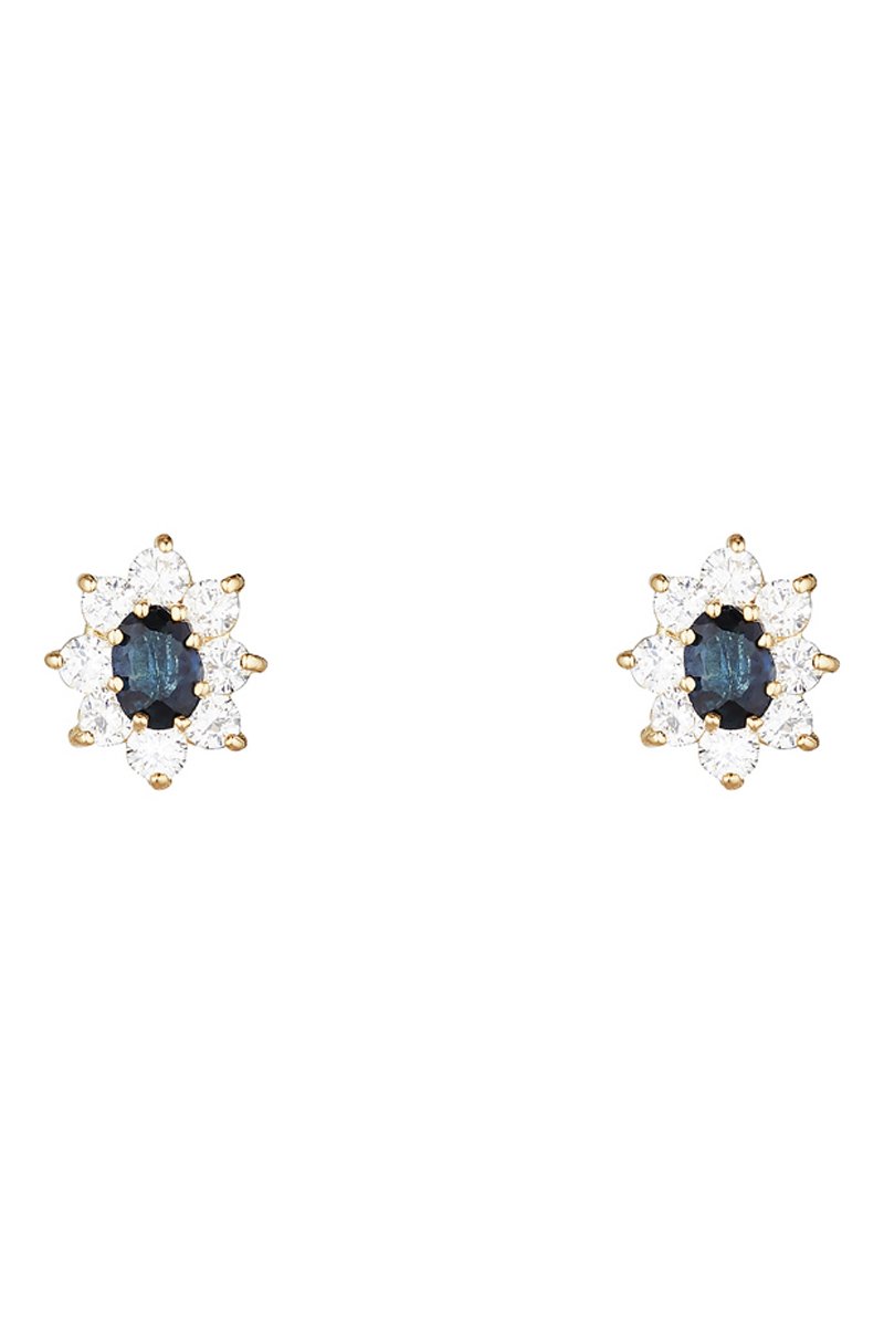 Brincos de ouro amarelo com 1 safira e zircónios.