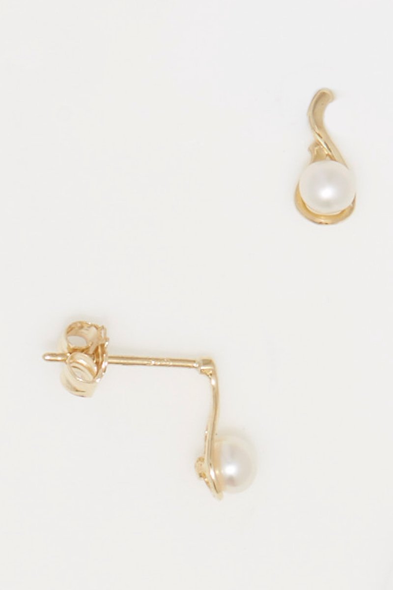 Brincos de ouro amarelo com uma pérola de cultura de água doce.