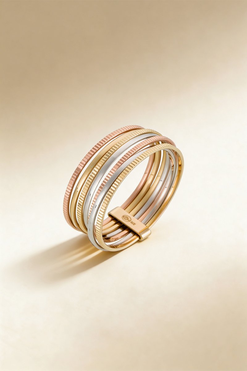 Anel de ouro amarelo, ouro branco e ouro rosa.