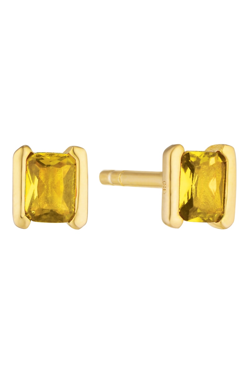 Brincos em prata banhada a ouro amarelo com um zircão cúbico.