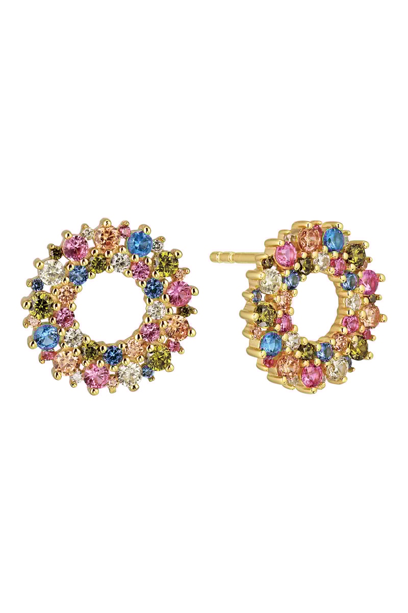 Cor dos zircões cúbicos: rosa, azul, verde e branco