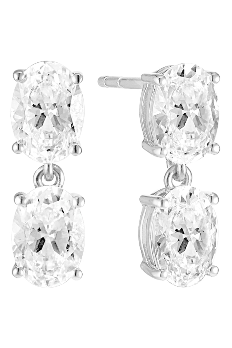 Brincos pendentes em prata cravados com 2 zircónias cúbicas.