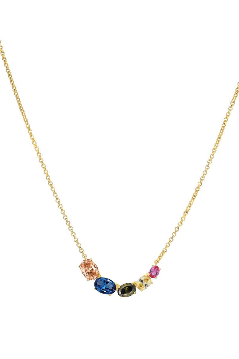 Cor dos zircões cúbicos: fúcsia, azul, verde e amarelo