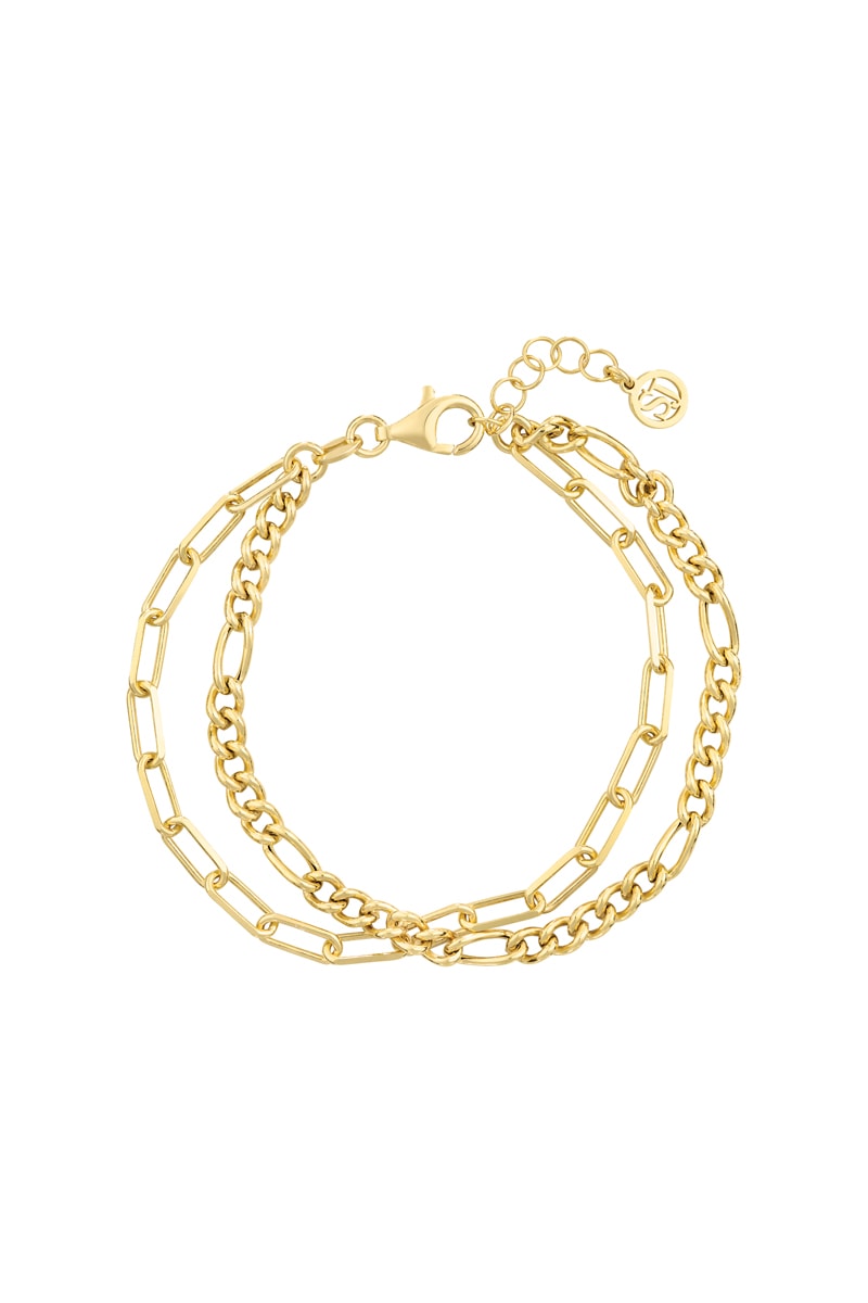 Pulseira de duas voltas em prata banhada a ouro amarelo.