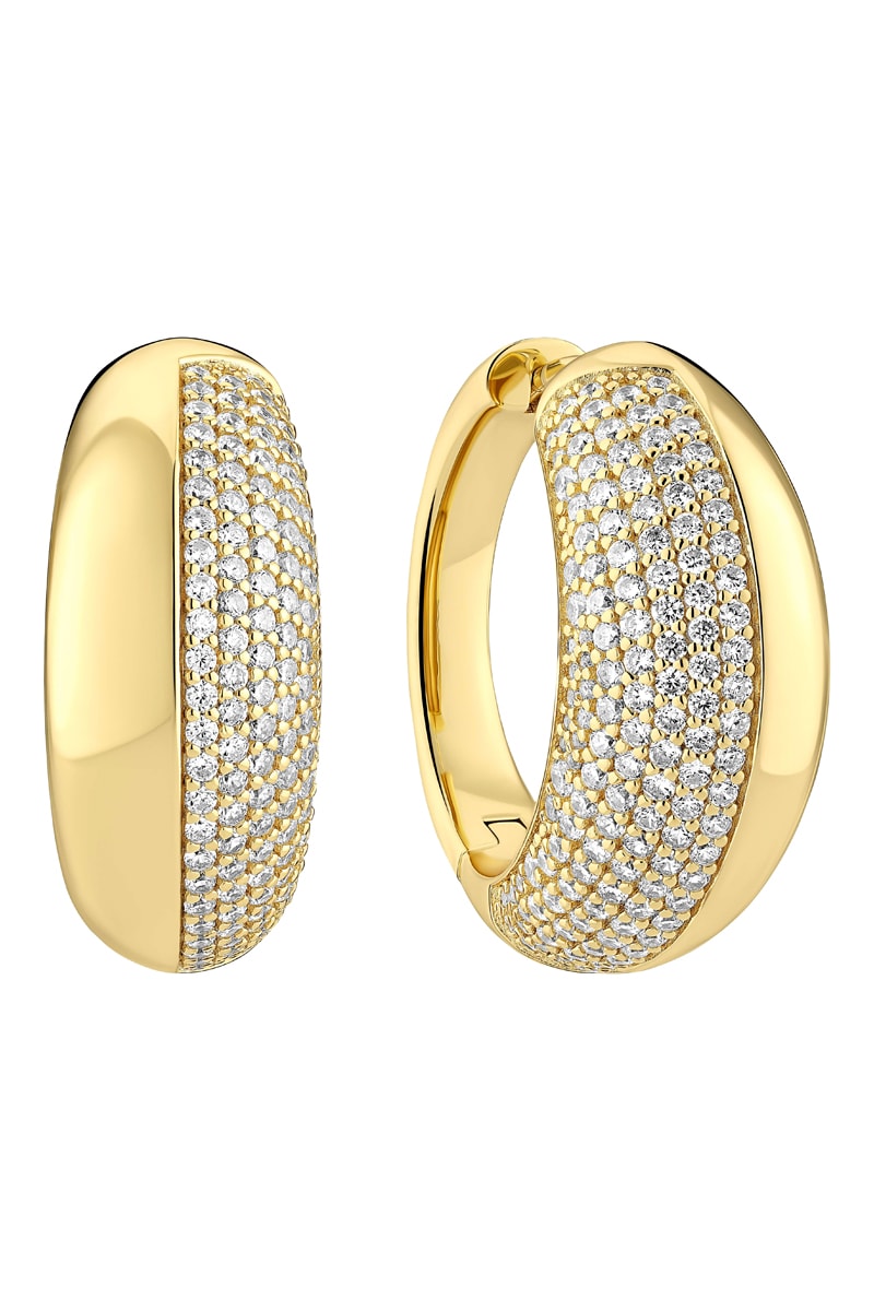 Argolas em prata banhada a ouro amarelo com zircões.