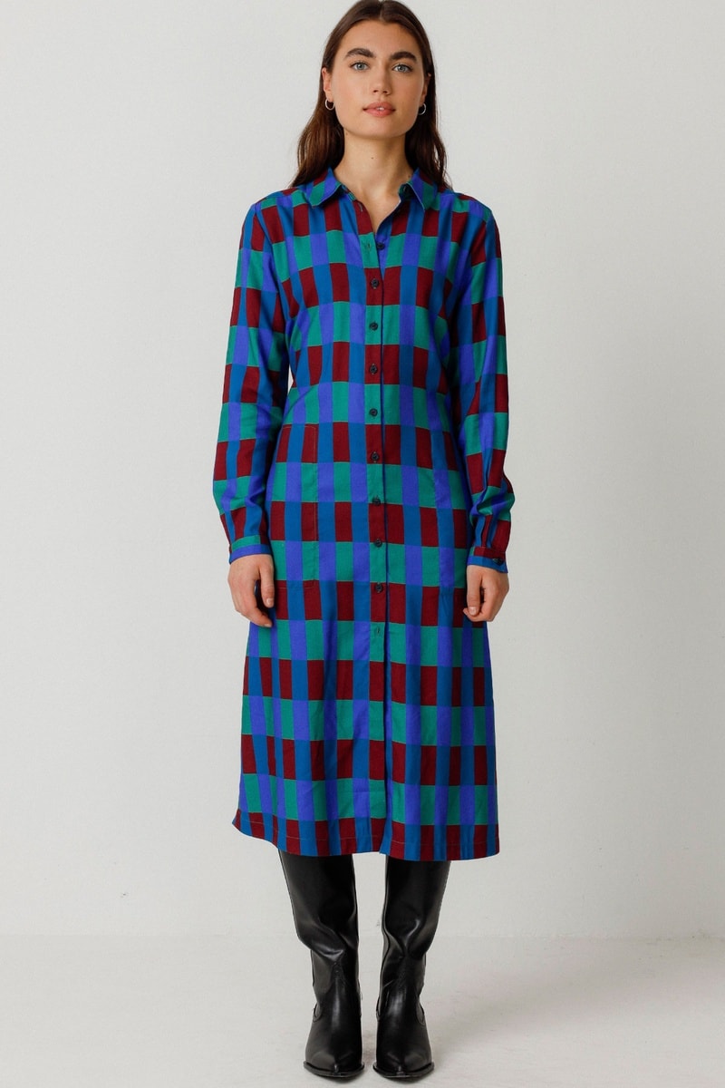 Vestido-camisa em algodão biológico Ibane - Multicor