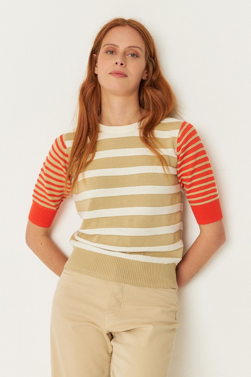 Estampado às riscas.