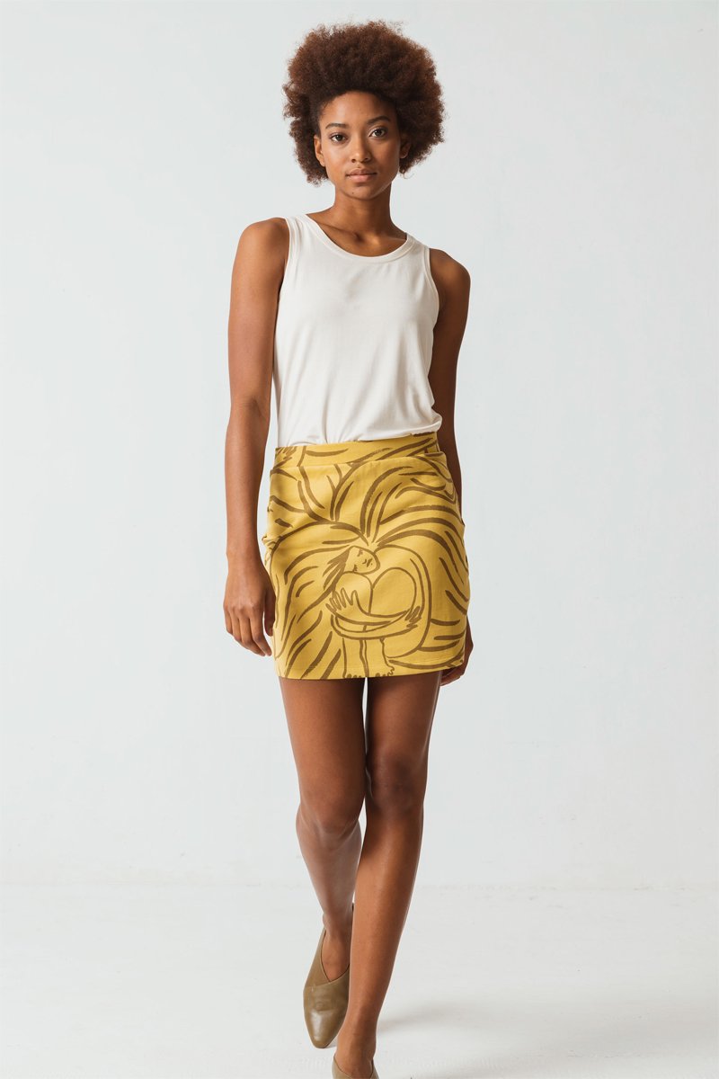 Saia em algodão biológico - Amarelo - Amarelo e castanho