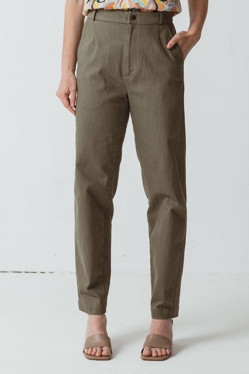 Calças de ganga direitas cintura subida em algodão biológico - Caqui - Verde