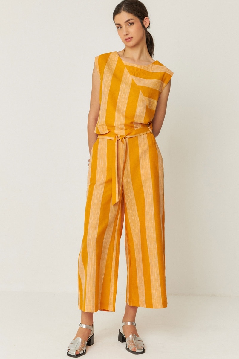 Calças palazzo de cintura alta em linho e algodão biológico Dona - Laranja