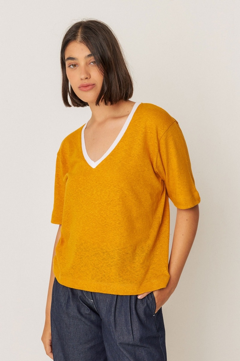 T-shirt larga em algodão biológico e linho Izadi - Laranja